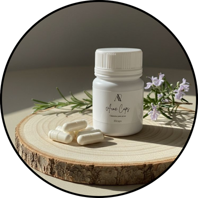 Beleza de Dentro para Fora. Suplemento auxiliar no combate à acne, equilibrando o organismo e melhorando a oleosidade e saúde da pele.